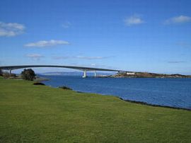 Accross Skye Bridge, Straight over at Roundabout Blairdhu House on the Left